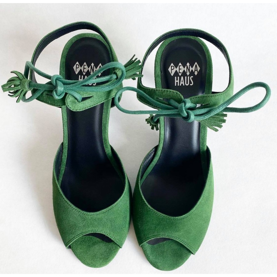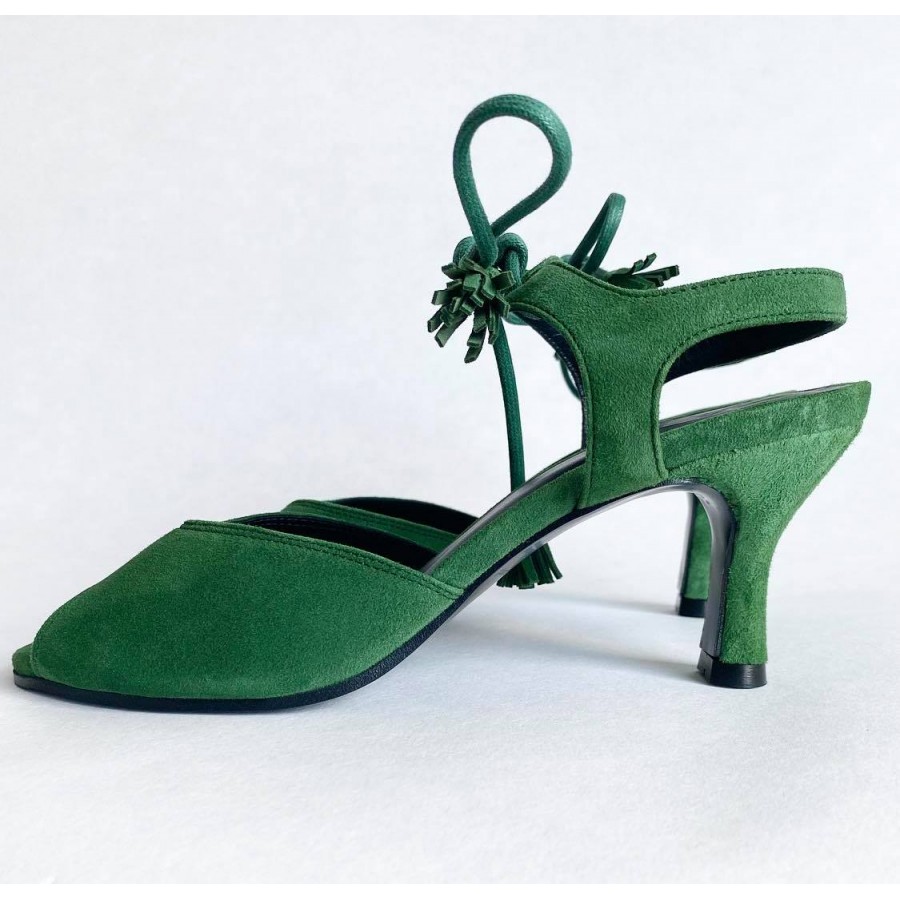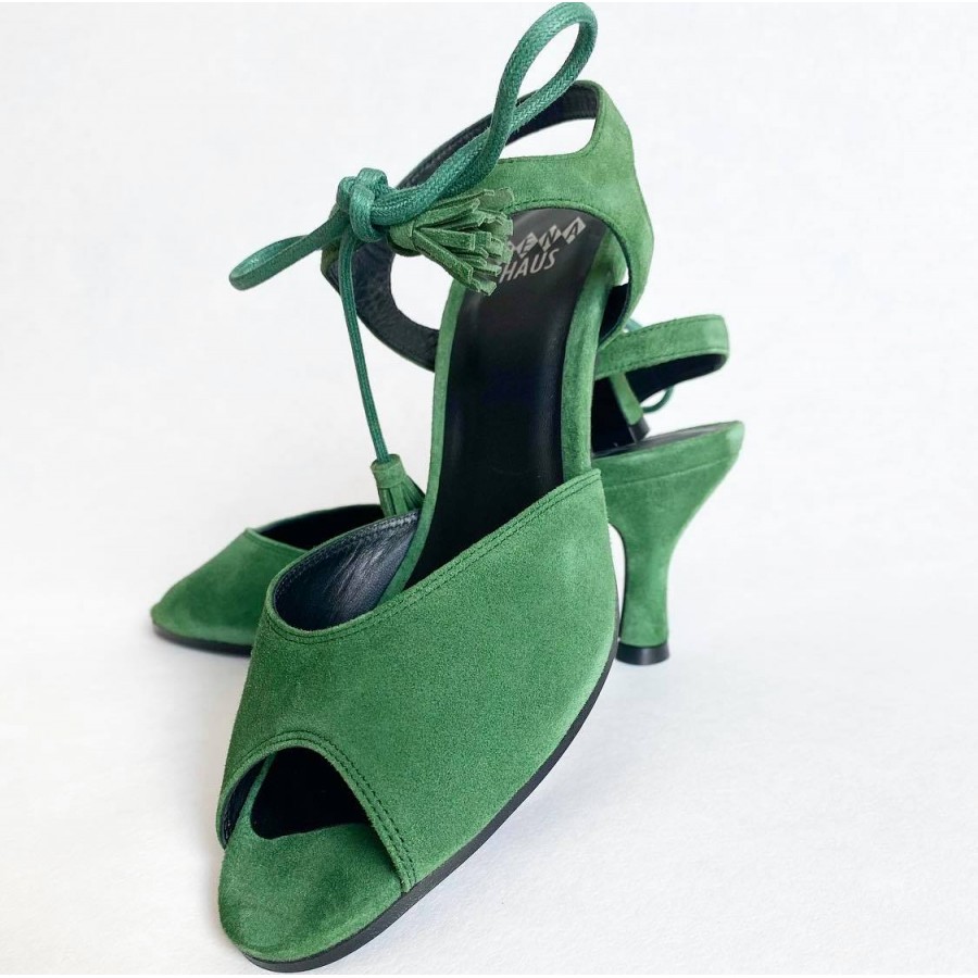This is a suede 7 cm / 2,7 inch heel shoe with a THUNIT sole.