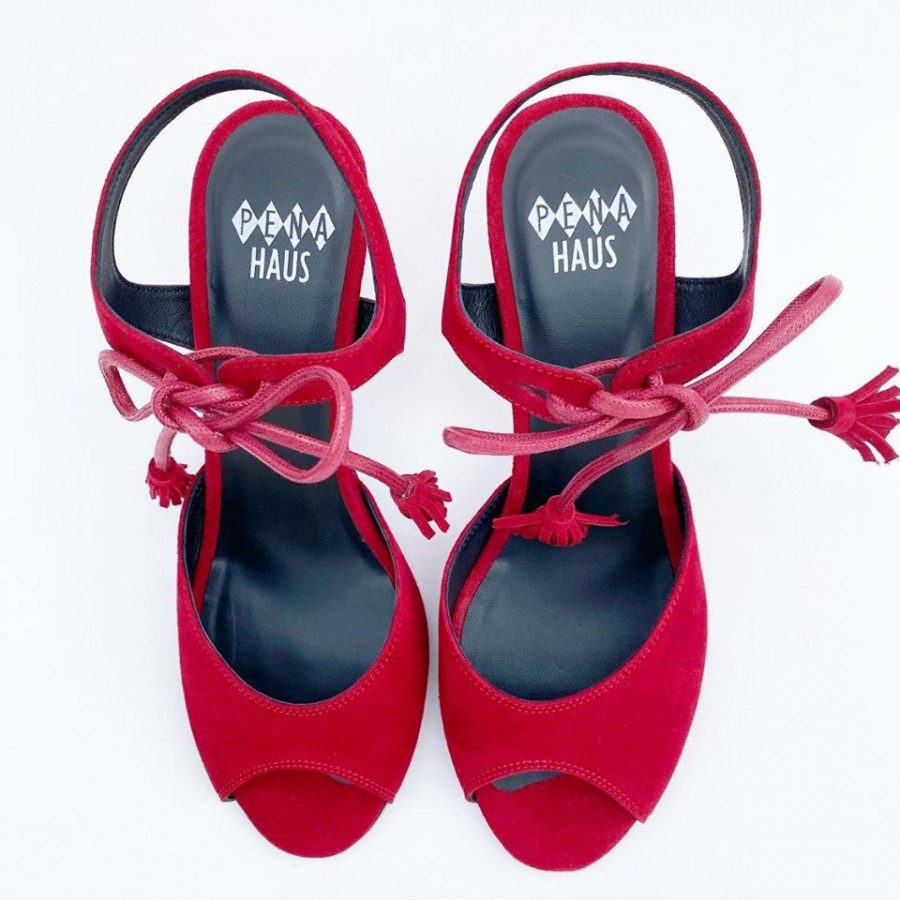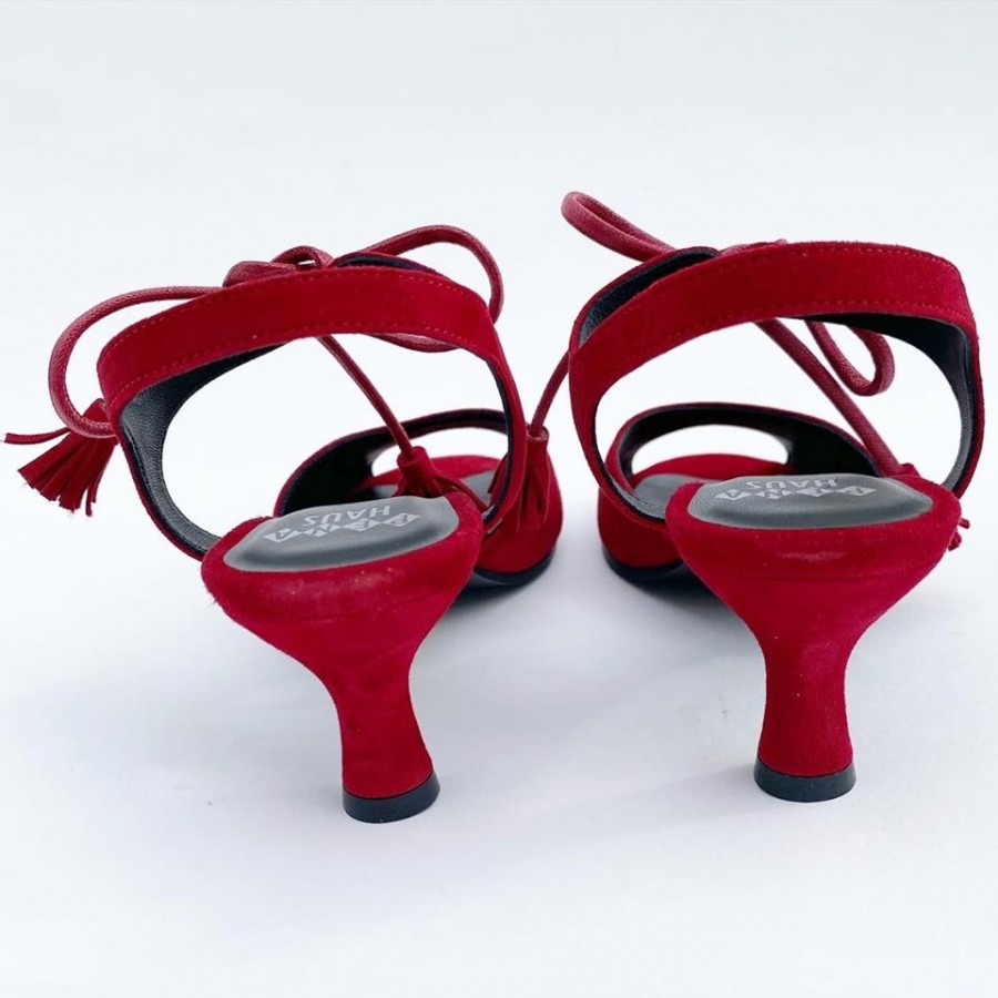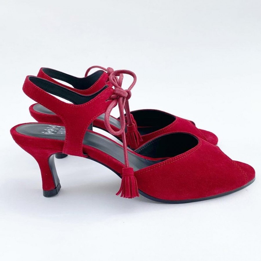 This is a suede 7 cm / 2,7 inch heel shoe with a THUNIT sole.