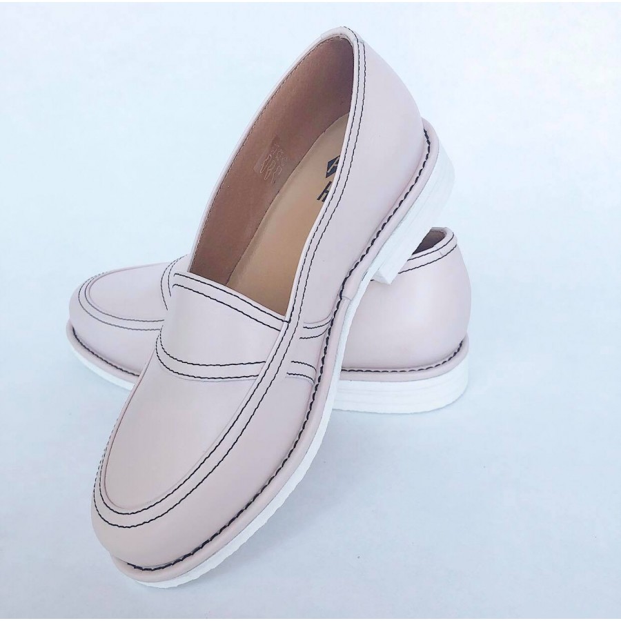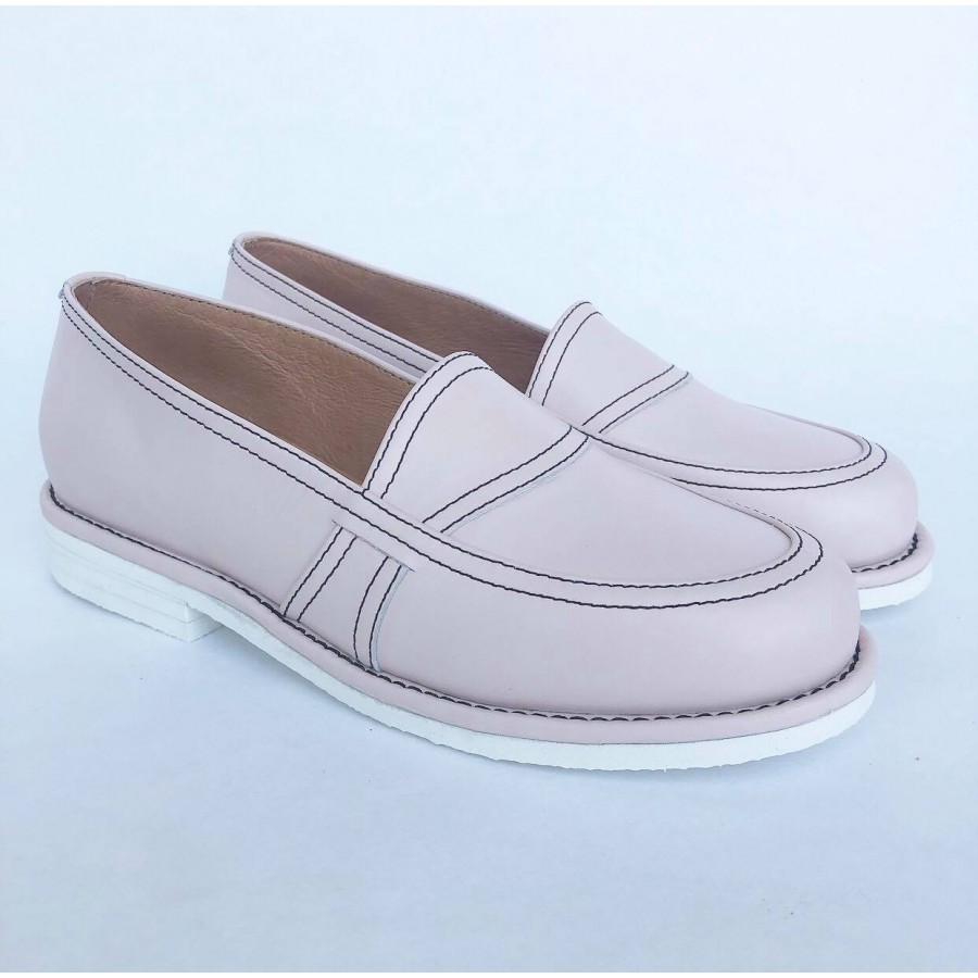 Pink Leather with a white microsole.